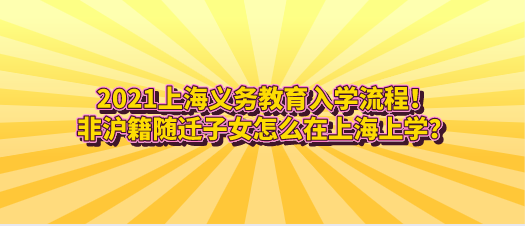 2021年非沪籍儿童在上海读小学和初中阶段需要满足什么条件?《2021年本市义务教育阶段学校招生入学工作的实施意见》关乎孩子在上海上学的问题,我们一起来看看吧!