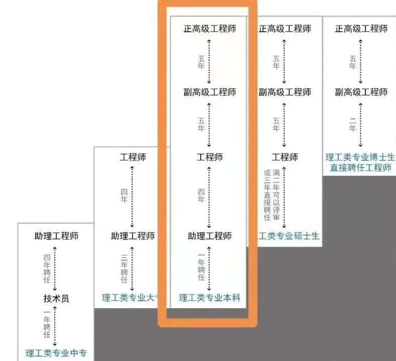 如果把职称比喻成一条通往山顶的路的话,那么具备一定的学历,从事专业技术工作是起点,每前进一段,这个就是指工作年限,就可以升级,从初级到中级到高级,直到山顶的正高级。