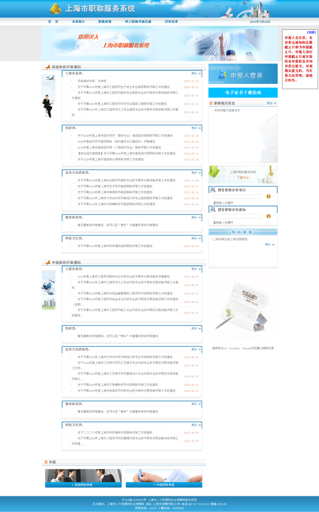 对照你自己所从事的专业,可以到“职称服务系统”(http://www.rsj.sh.gov.cn/zcps/zcpssb/index)