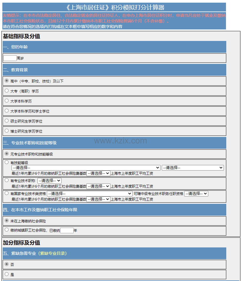 上海居住证积分查询入口:上海积分120分模拟器