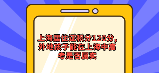 外地孩子在上海高考除了父母要有居住证积分达到120分之外,还需父母一方持上海居住证满三年,并且要孩子是在上海的高中毕业。