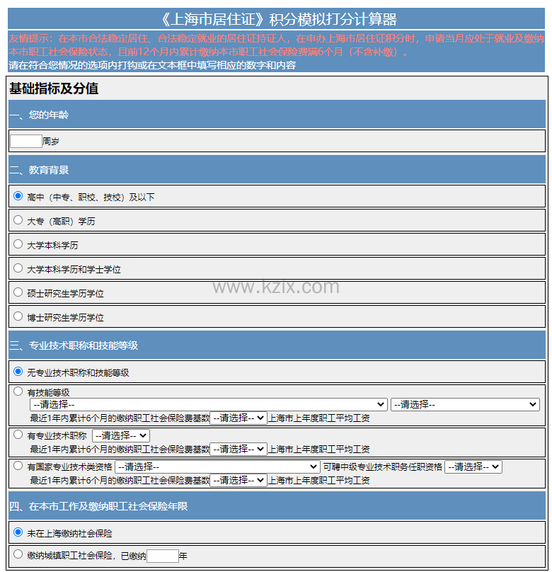 上海居住证积分查询入口:上海居住证积分模拟打分器