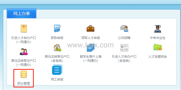 第三步:然后点击进入找到“居住证积分”,然后点击进入下一步(如下图所示)