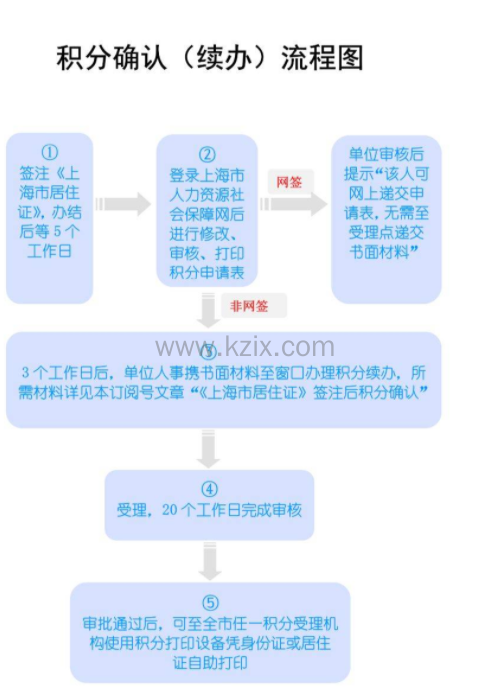 续签上海居住证积分前请先签注上海居住证签注完居住证后3-7个工作日在上海人力资源社会保障网上进行续办申请操作→个人申请提交→单位审核通过。
