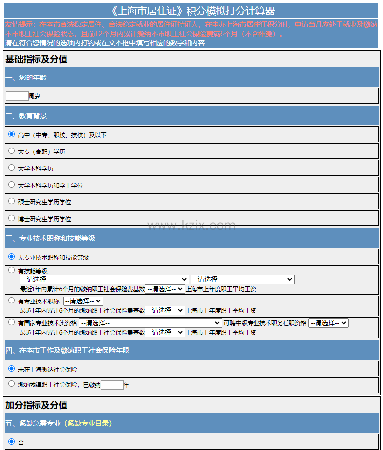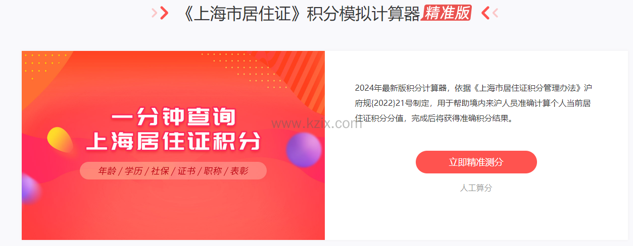 上海居住证积分模拟计算器:https://www.kzix.com/jifenmoni