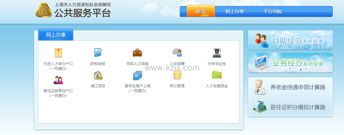 上海人力资源和社会保障局公共服务平台:https://ggfw.rsj.sh.gov.cn/wsbs.html