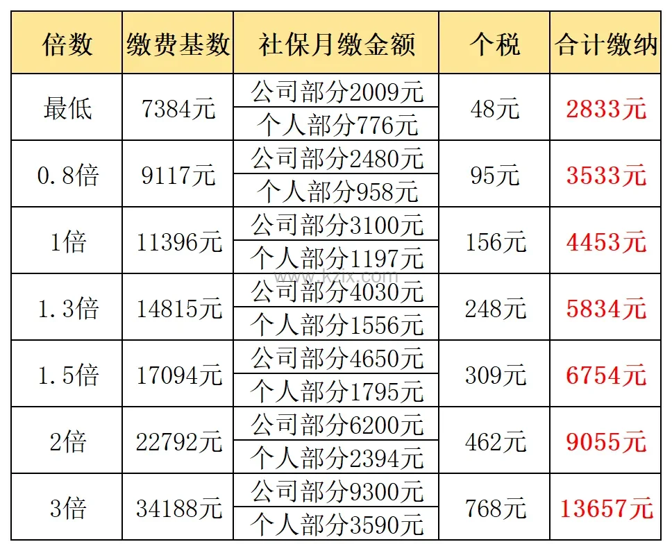 以1.3倍社保基数(14815元/月)为例,个人每月需缴纳的养老保险金额为14815元×8%=1185.2元,医疗保险和生育保险合并后需缴纳14815元×2%=296.3元,失业保险需缴纳14815元×0.5%=74.08元。因此,个人每月需缴纳的社保总金额为1555.58元。公司则需按照相应的比例缴纳更高的金额。