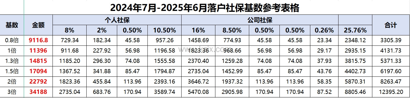 (0.8倍)7384≤社保基数<11396:居住证积分加25分