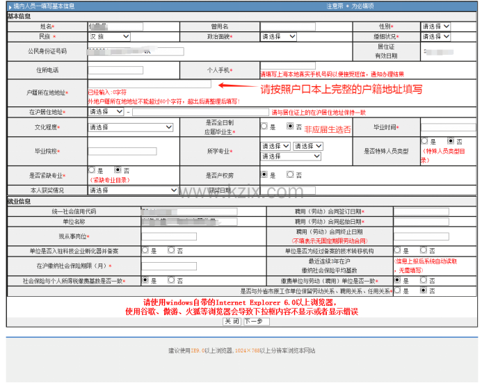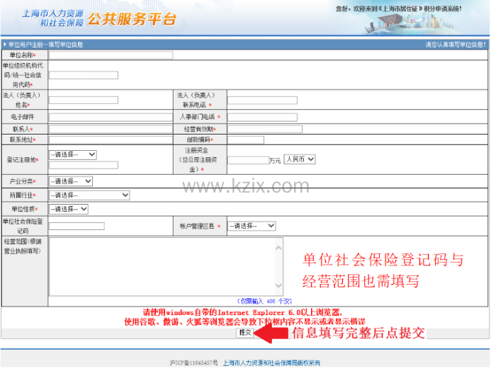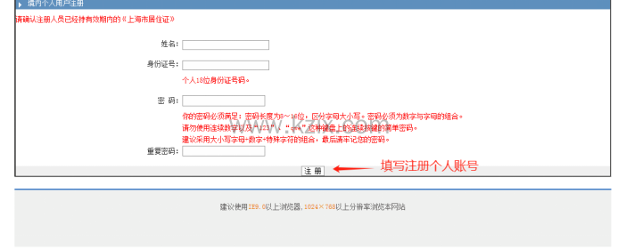 已审核通过的用人单位登录上网,为申请人进行网上注册,并填写《<上海市居住证>积分申请表》