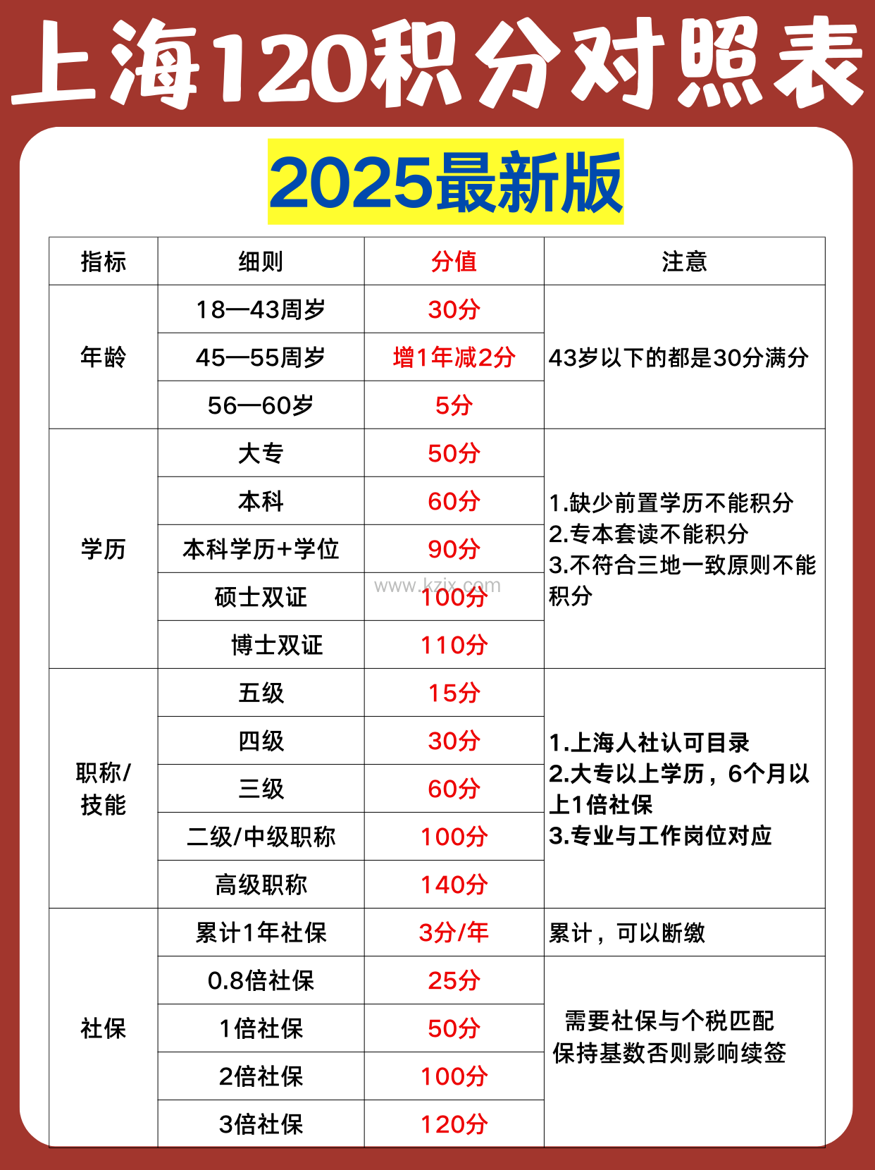 5、专科50+0.8至1倍25+年龄30+社保年限(5年或以上)15=120分