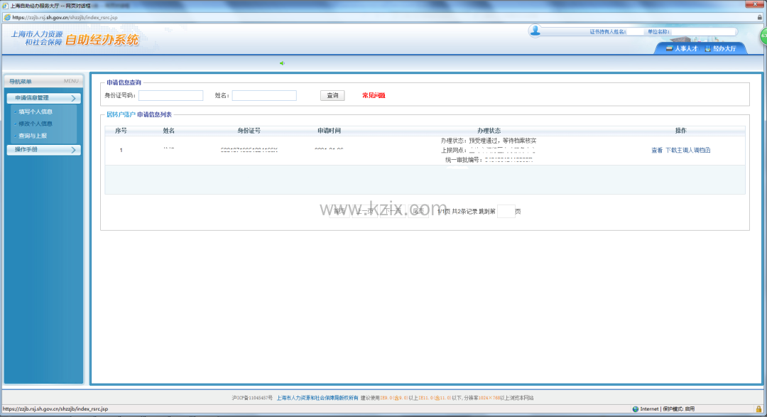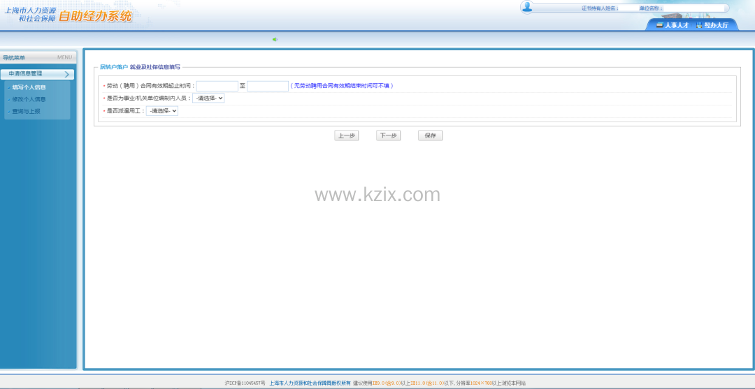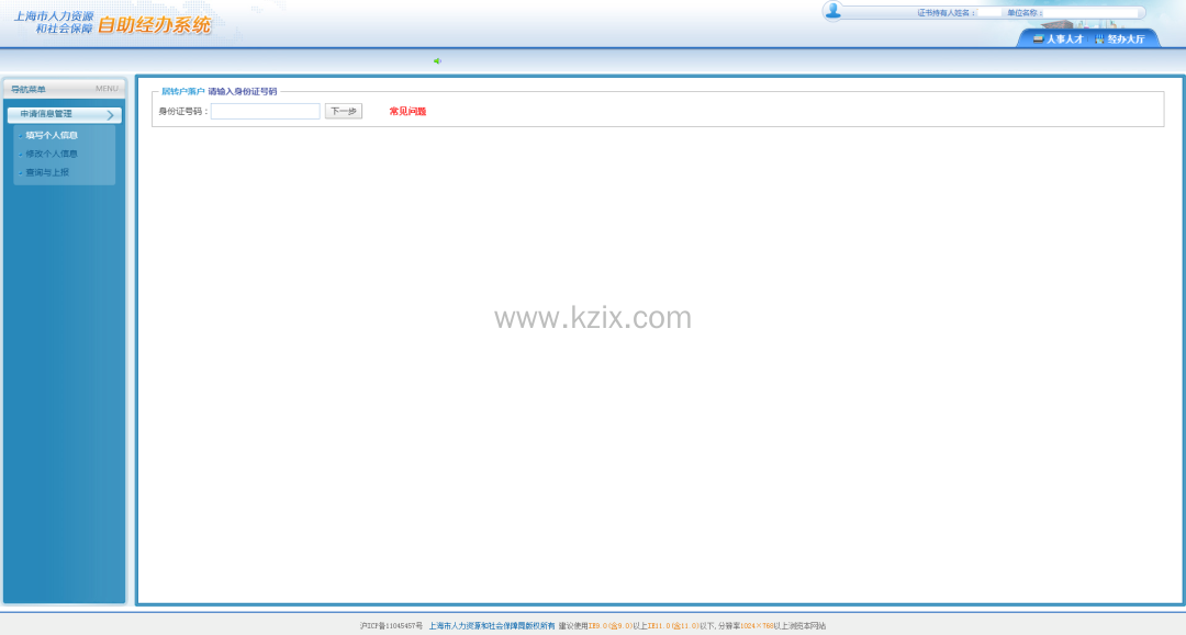 然后输入网址:https://zzjb.rsj.sh.gov.cn/zzjbdl/jsp/login.html,进入上海市人力资源和社会保障自助经办系统