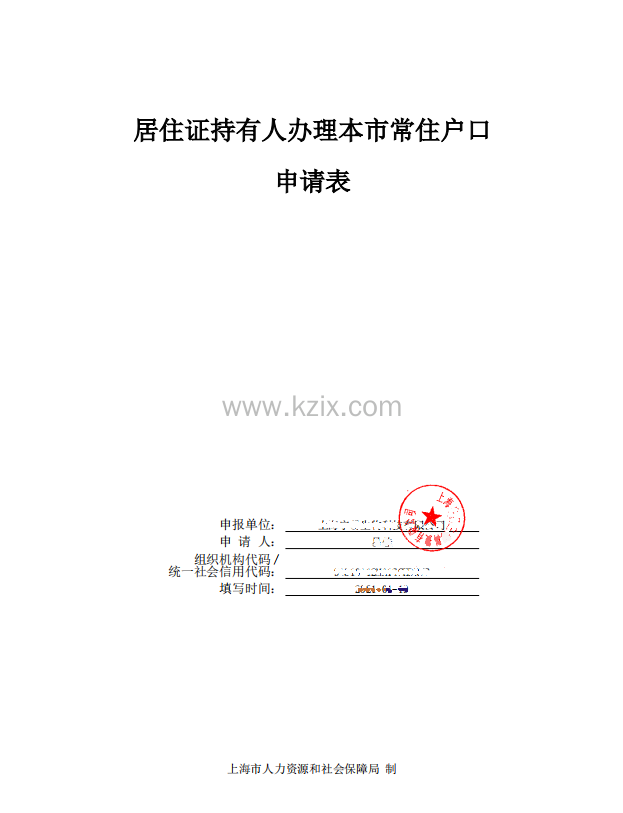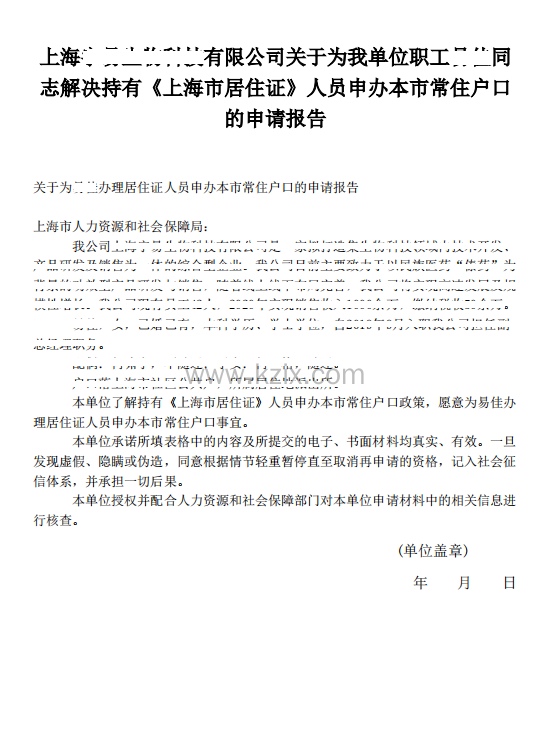 下载《居住证持有人办理本市常住户口申请表》,并在申请报告公函落款处加盖单位公章