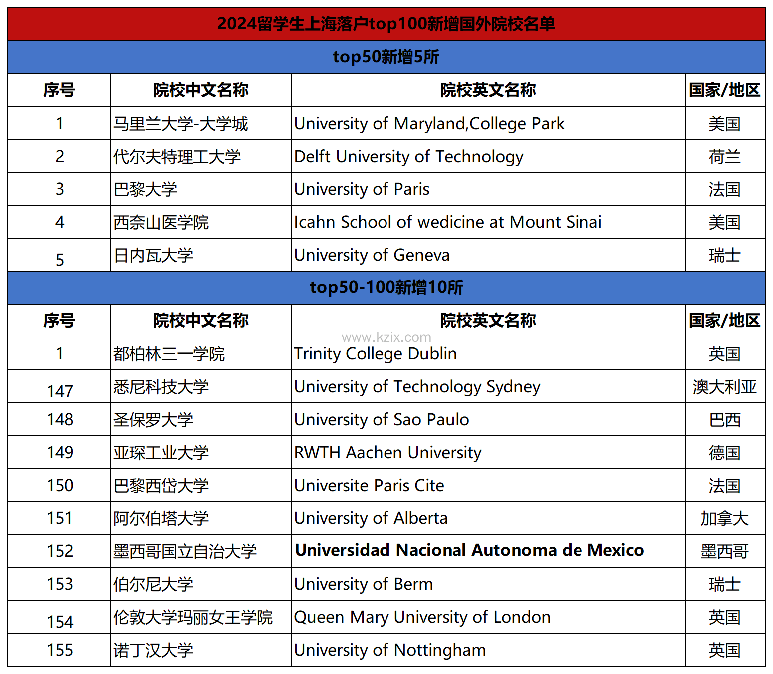 不久前!上海人社局在留学生落户系统更新了2024世界前100院校名单!划重点,除了保留2023年公布的大学名单之外,本次新增了15所大学!