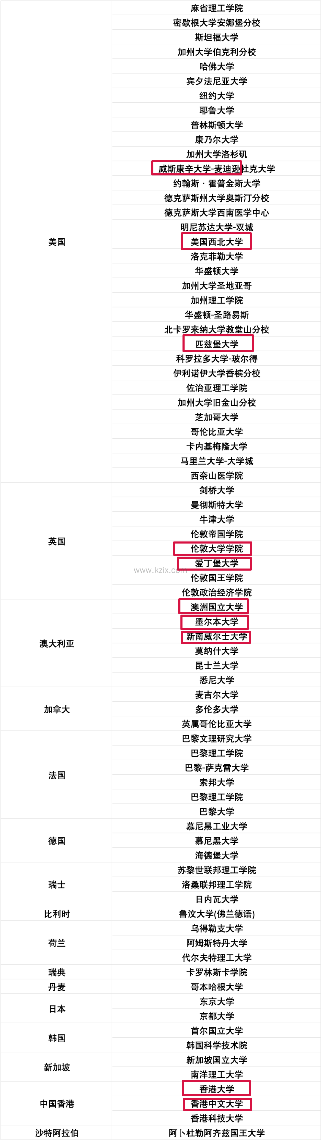 新规:高校名单已新增15所大学,目前全球前100名大学共计149所。