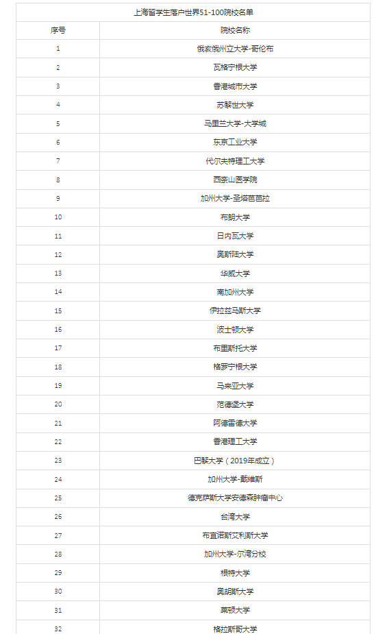 2、上海人社局认定的世界前51-100院校名单,共有76所院校,在名单里的留学生来沪全职工作,符合留学生落户的基础条件,缴纳6个月社保就能落户,没有社保基数和工作要求!